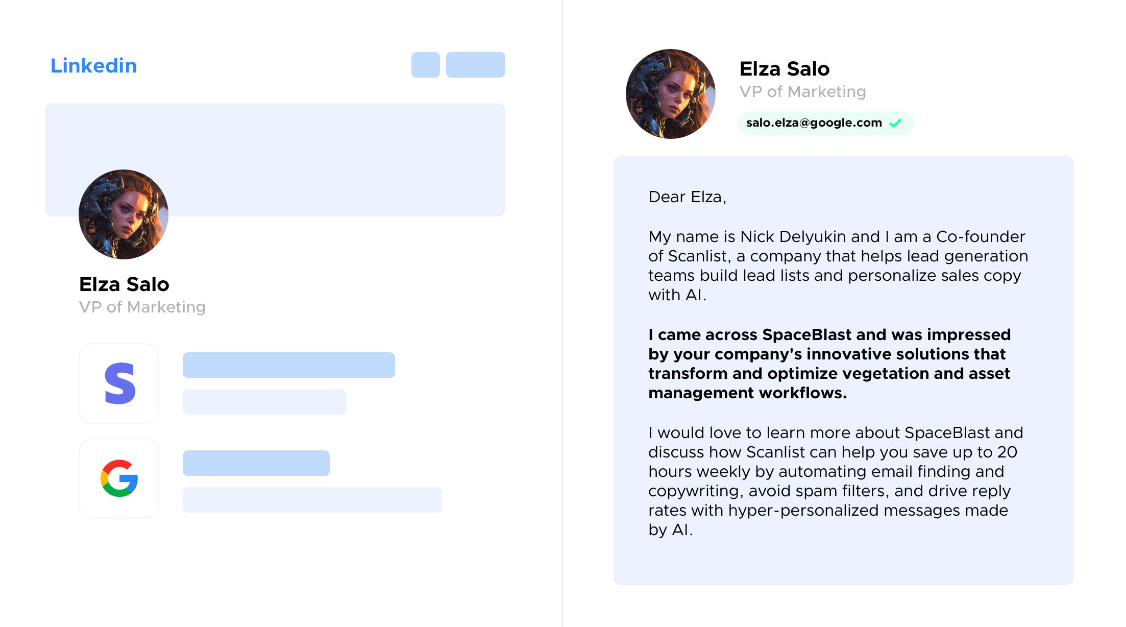 Scan business contacts, write personalized message sequences and create outstanding marketing copies faster than other humans with Scanlist AI.